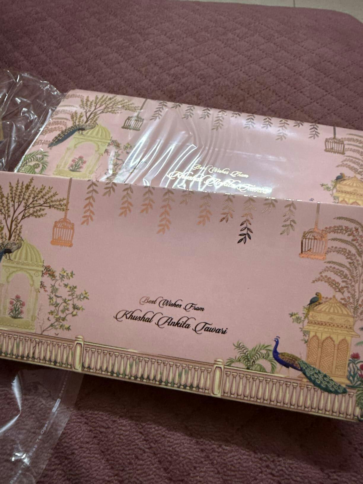 - Royal pink colour with traditional peacock & gazebo artwork