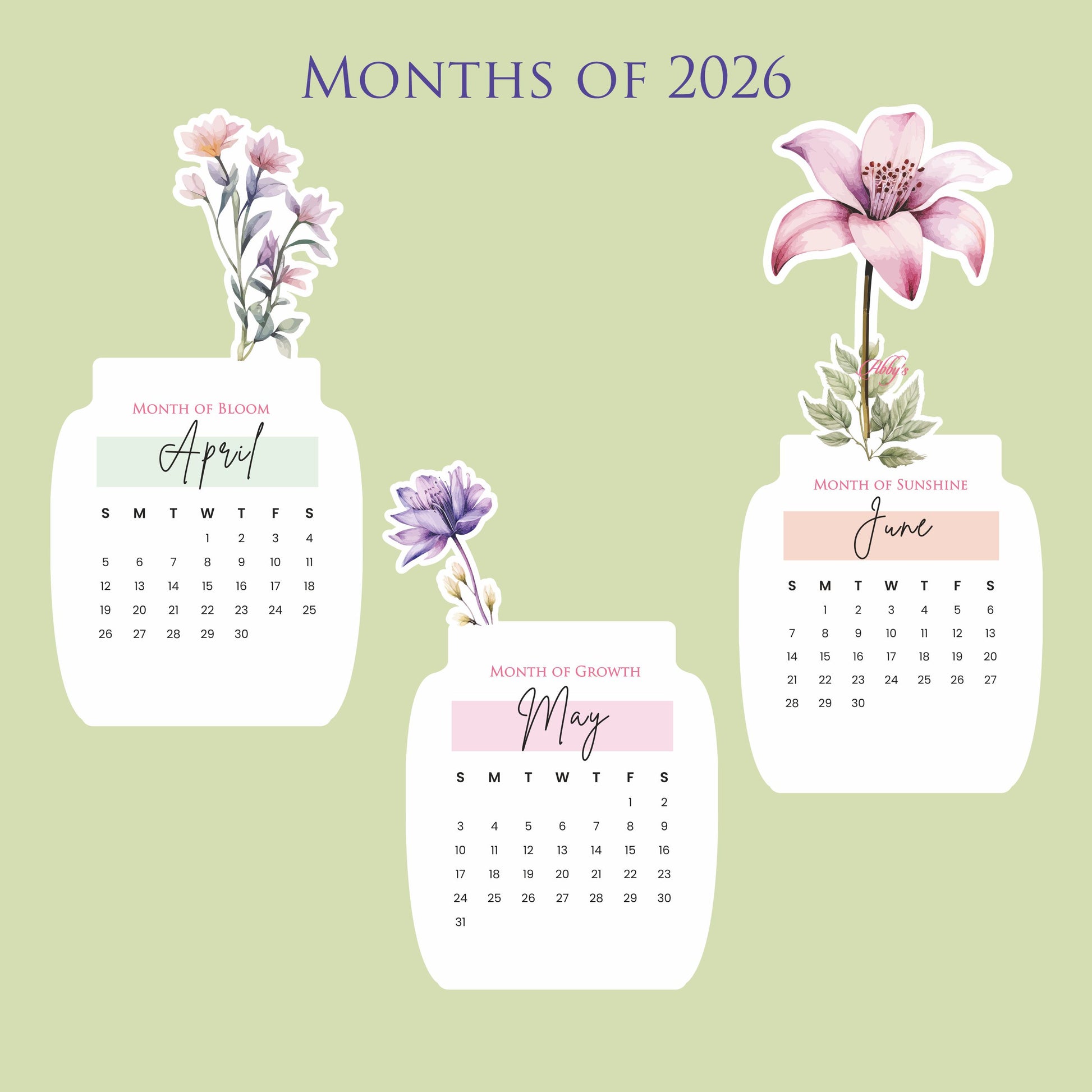 2026 Calendar for Desk – Floral Vase & Wooden Stand (Non-Customised)