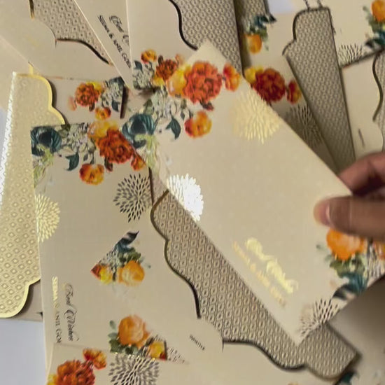 Indulge in luxury with our exquisite Shagun Envelopes featuring a velvet touch laminate and elegant gold foil accents.