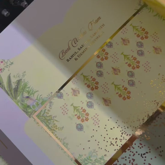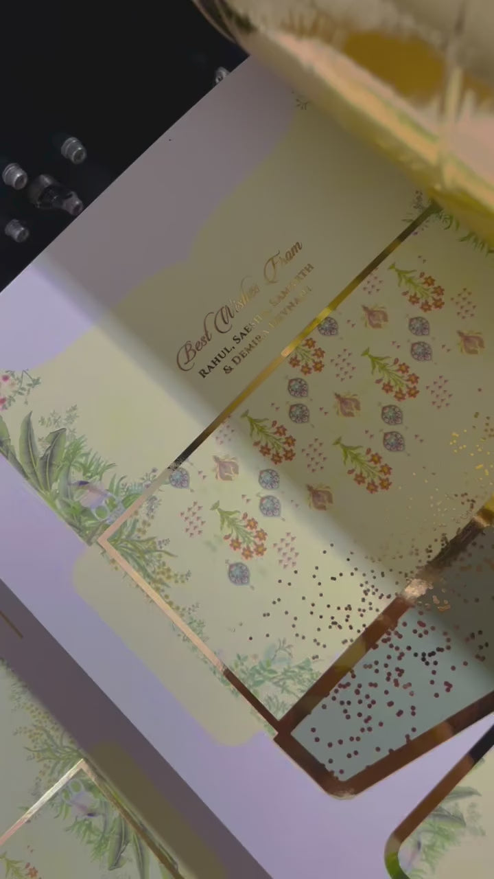 Indulge in luxury with our exquisite Shagun Envelopes featuring a velvet touch laminate and elegant gold foil accents.