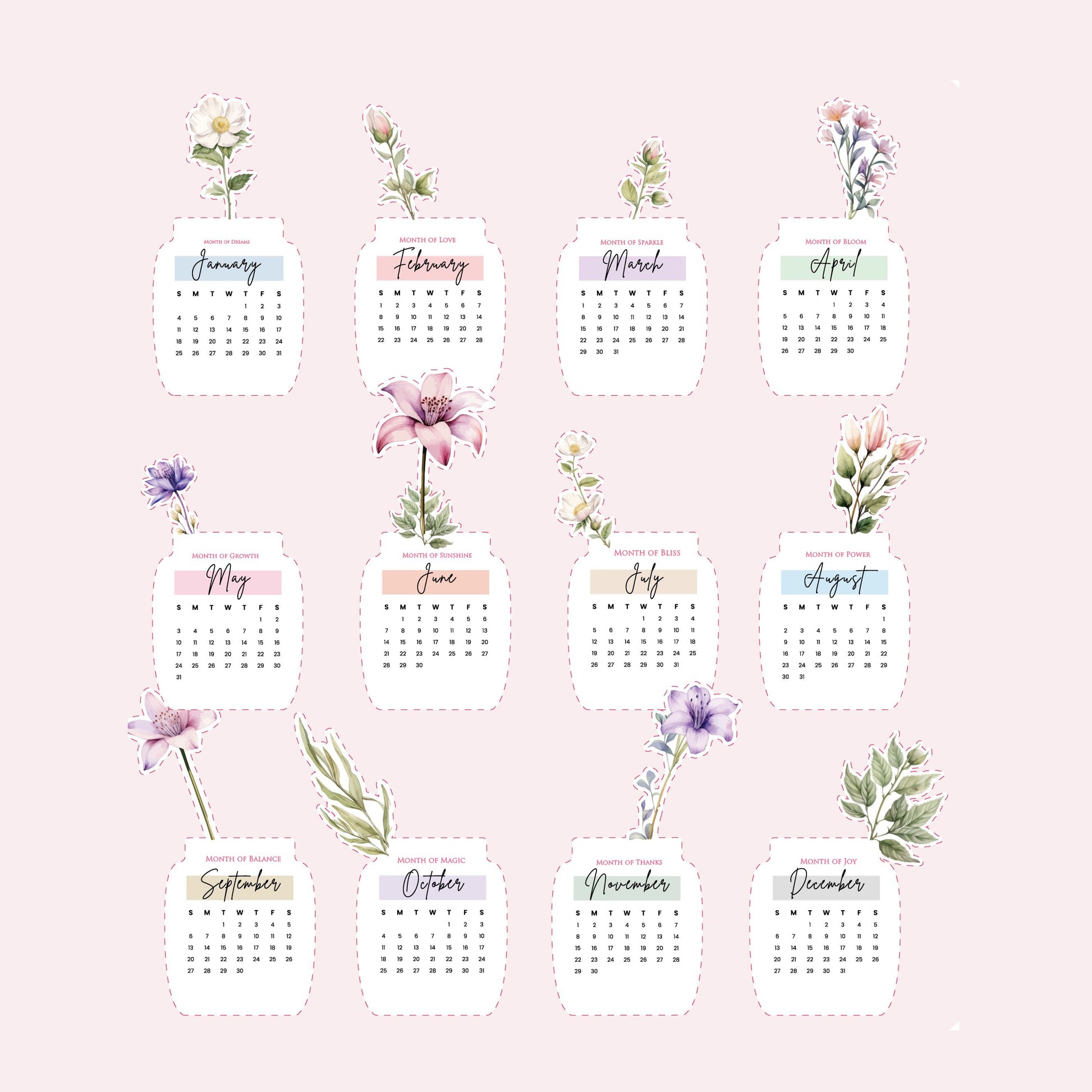 - 12 x Unique Floral Cutouts (Jan–Dec)