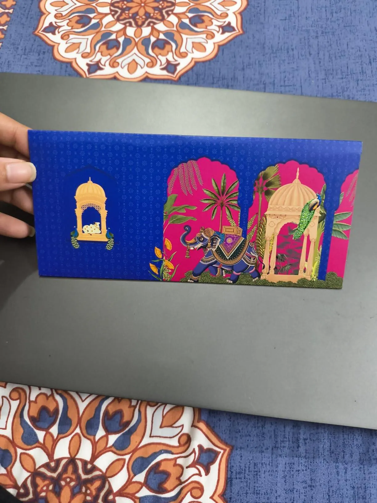 Indulge in luxury with our exquisite Shagun Envelopes featuring a Matt Touch laminate and elegant accents.