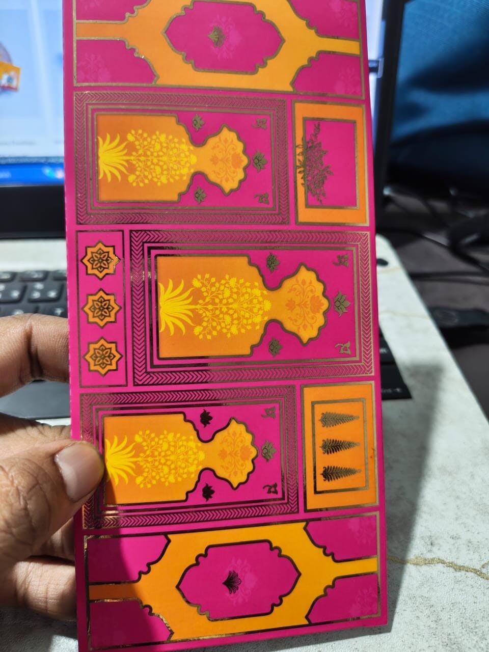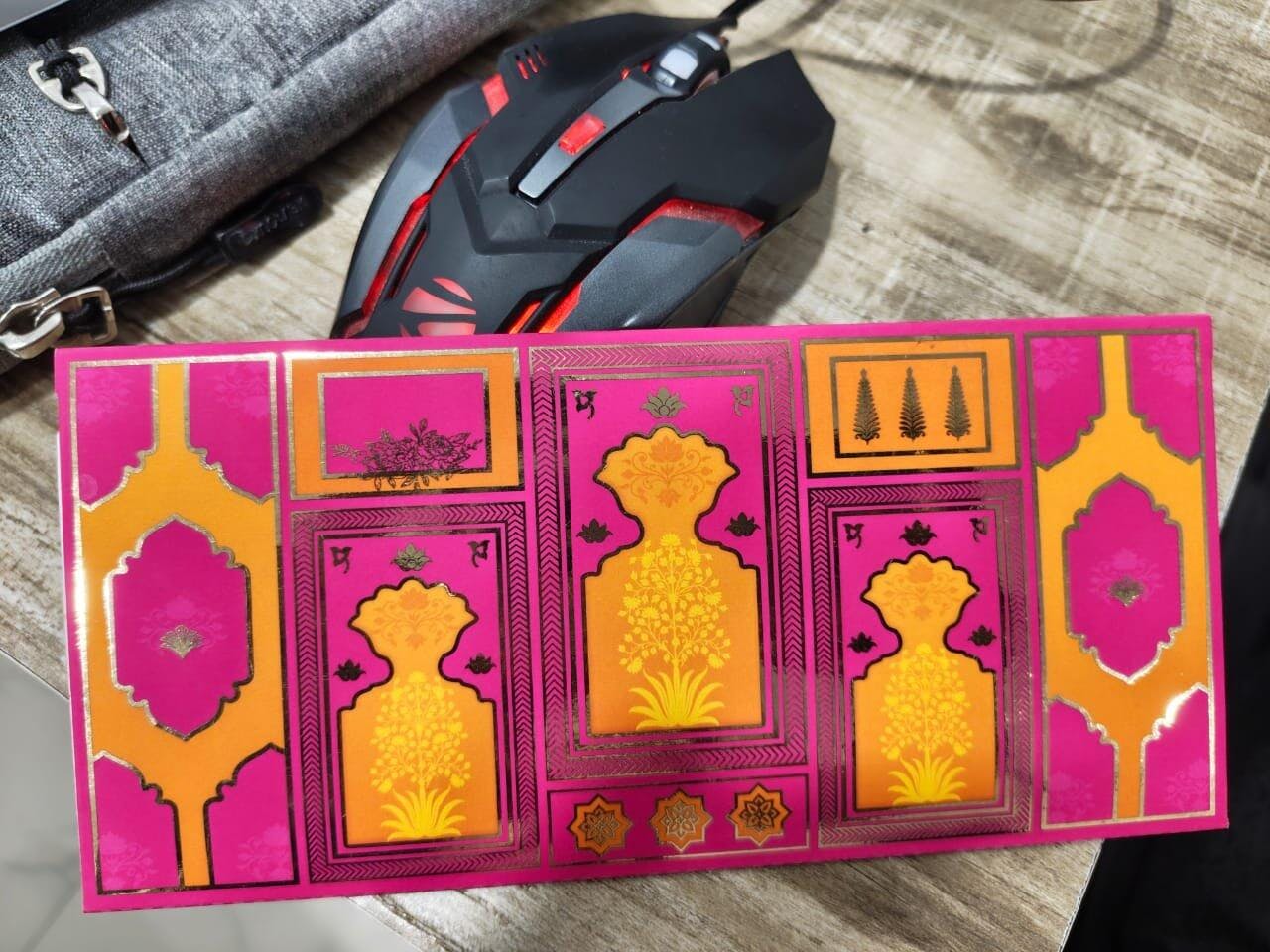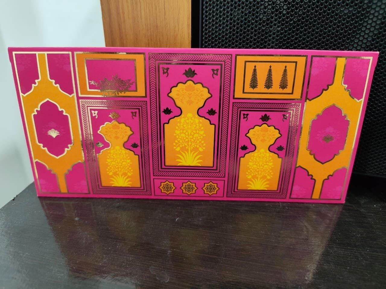 Absolutely loved the envelope! The navy and pink combination with the gold foil design looks so premium. Perfect for weddings and festive gifting. Everyone complimented it.