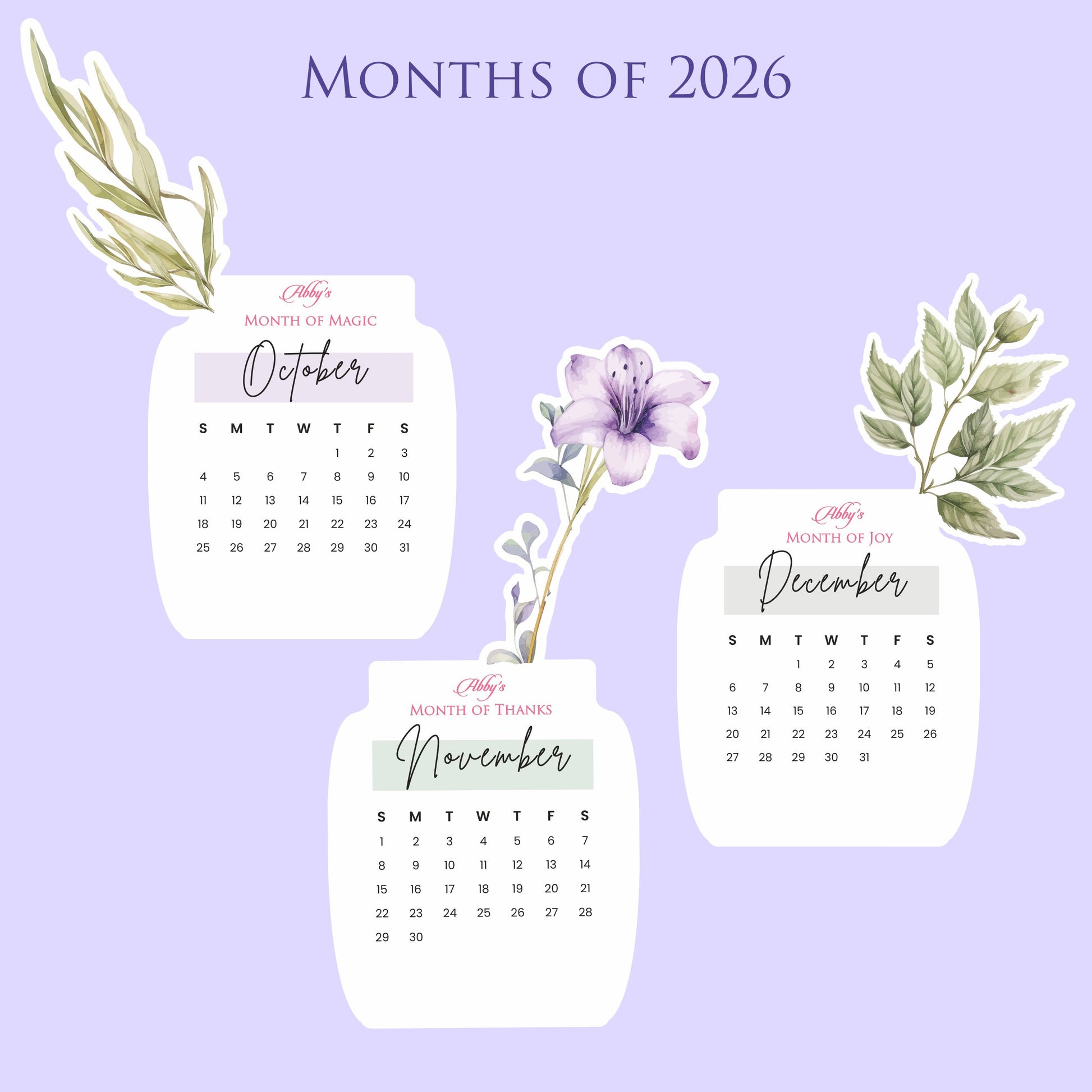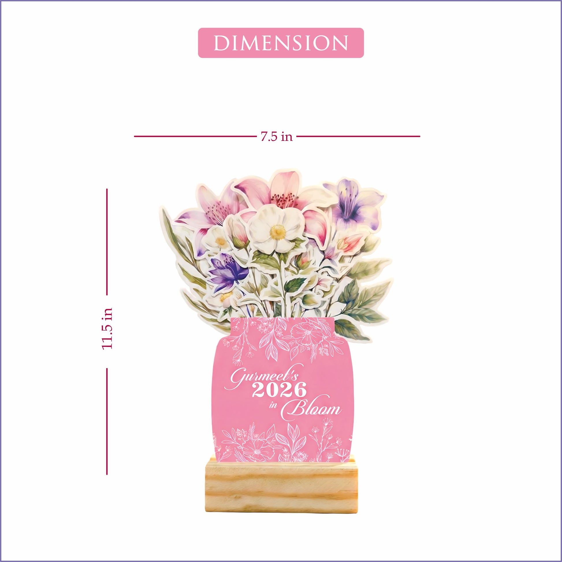 Customized 2026 Calendar for Desk – Floral Vase & Wooden Stand
